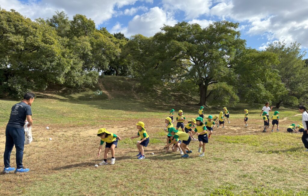 佐藤先生が隠した紅白球を見つける宝探しや、投げられた紅白球をどれだけ拾えるか勝負なども行いましたよ!一生懸命探す子どもたちでした…!