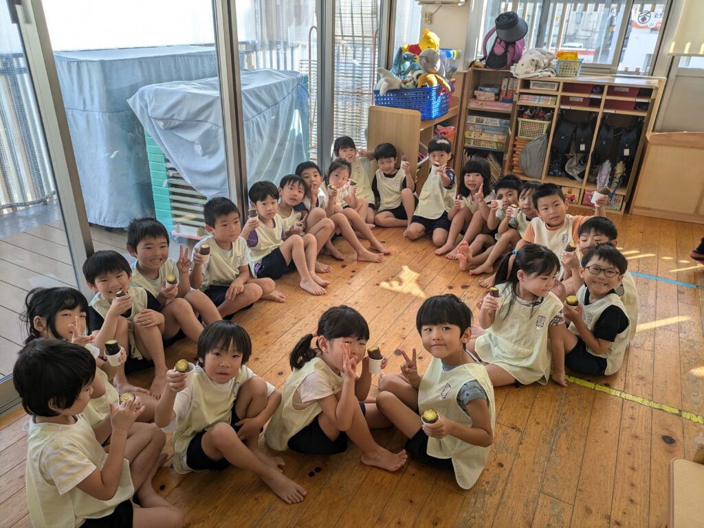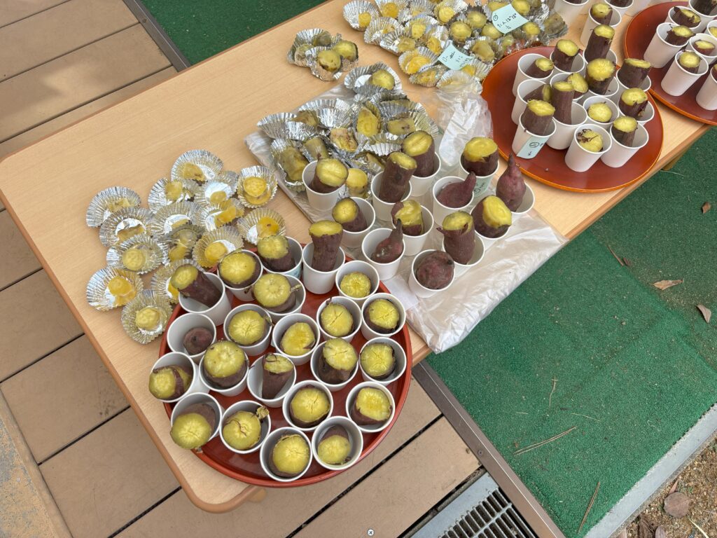 ほくほく・甘くておいしい、言葉にしなくても表情で伝わってきました。皮が薄く、そのまま丸かじりする幼児さんたちもいましたよ!