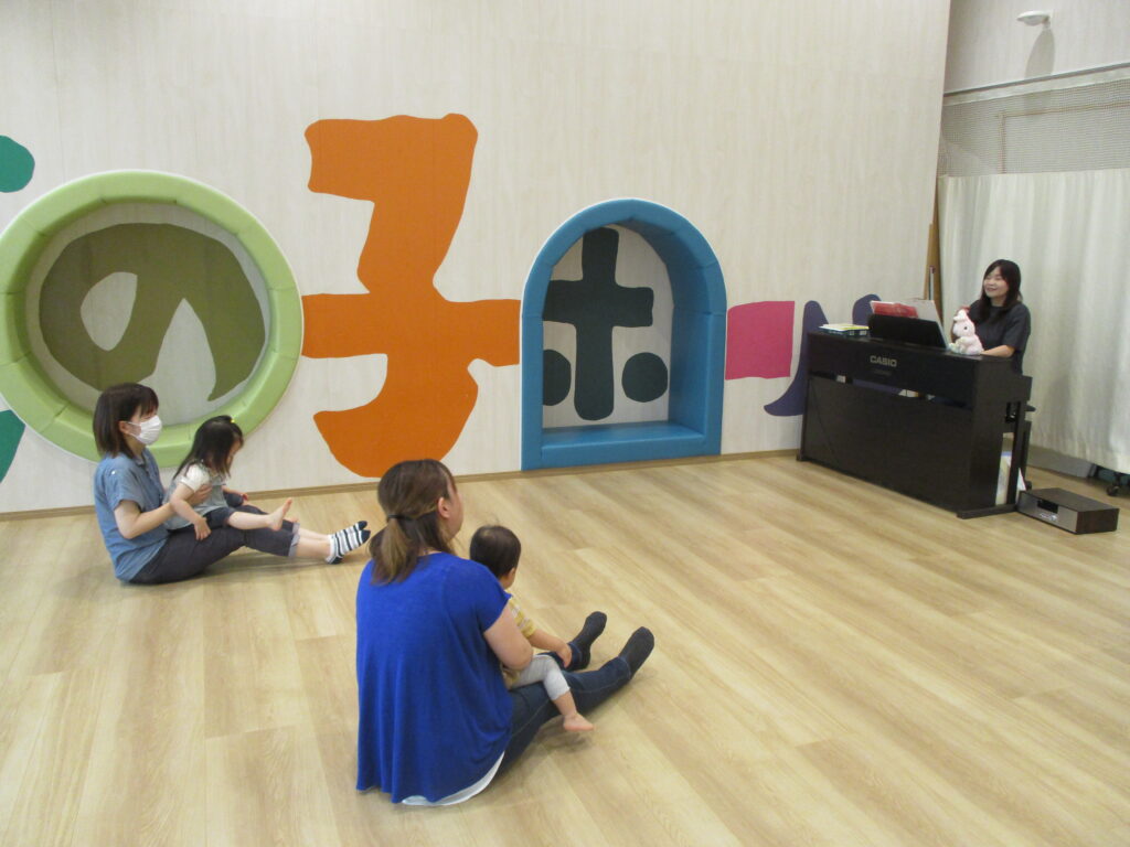 お子様を膝の上へ乗せていただき、ピアノの音に合わせて身体を揺らしたり親子で触れ合ったり…。