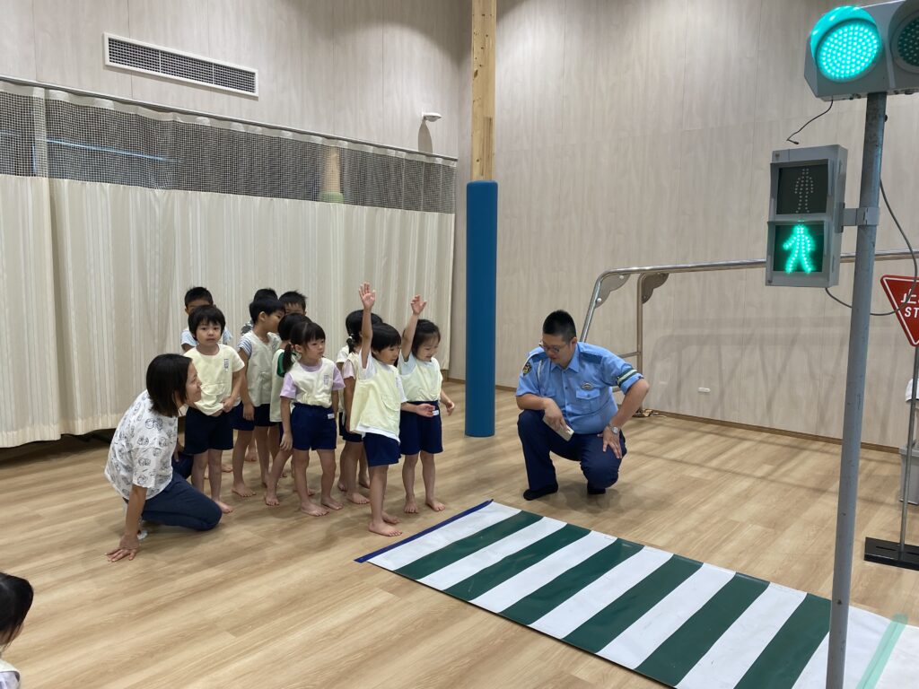 今日教えて頂いたことを忘れずに、これからも交通ルールに留意しながら散歩を楽しんでいきます。登降園時は、保護者の皆様も一緒に気を付けていただければ幸いです。