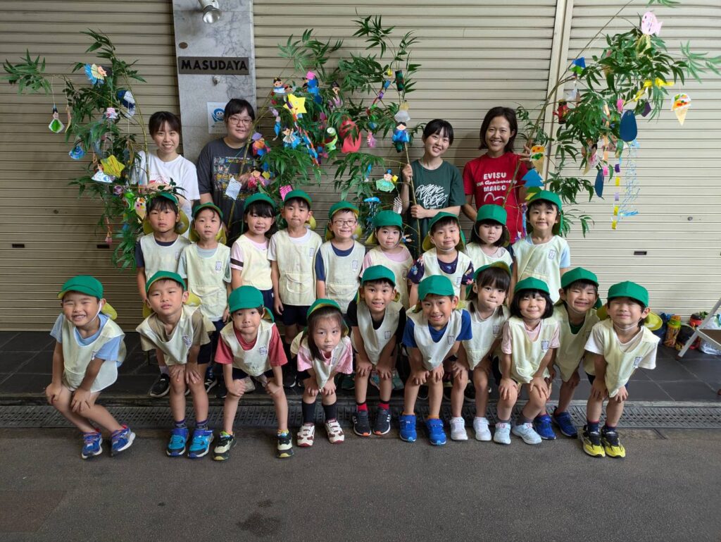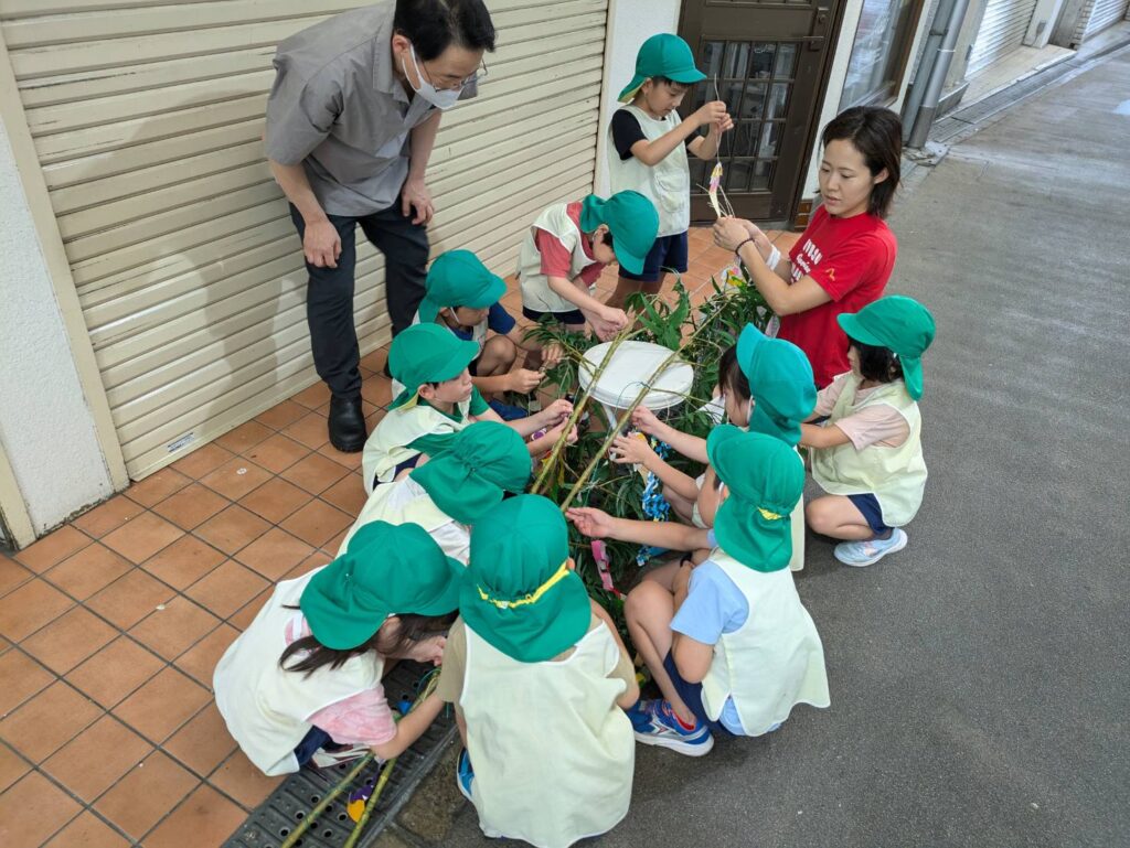 5歳児やま組が園の代表として、藤井寺商店街の笹飾り行事に参加しました。