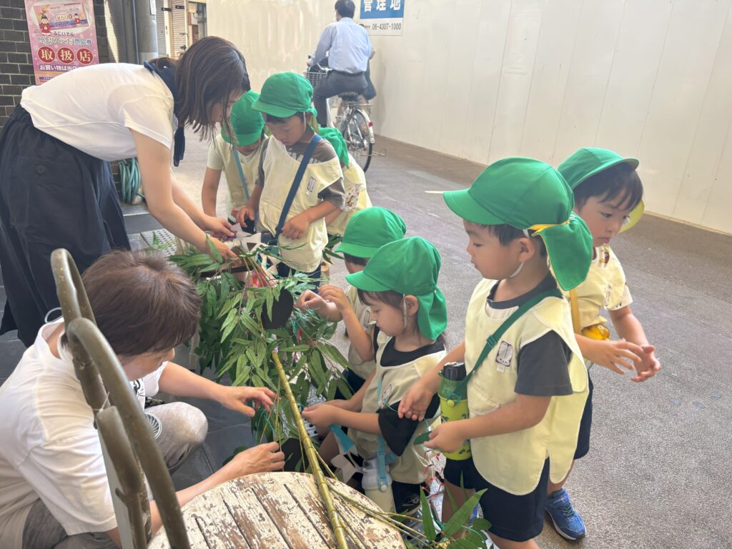 また、5歳児は藤井寺商店街の笹飾り行事に参加しました。