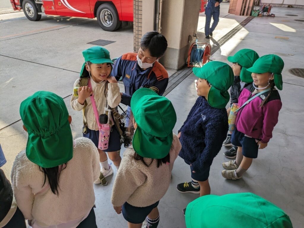 消防士さんが到着すると元気いっぱいに挨拶!