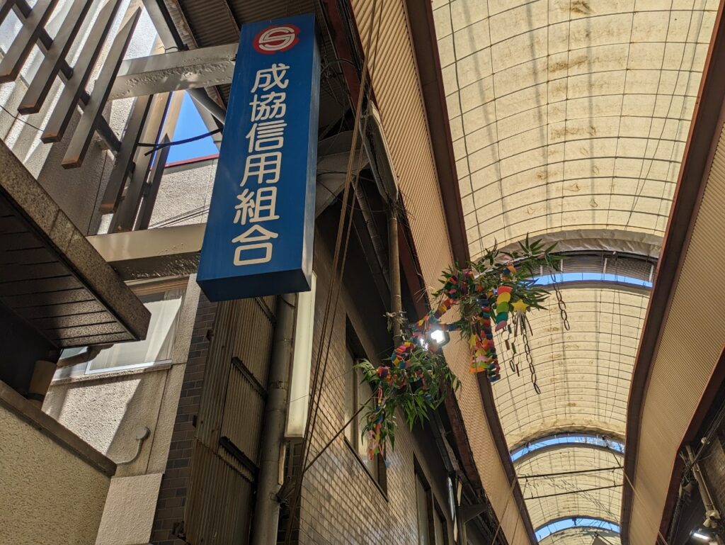 こちらの笹は、藤井寺駅前北商店街の中にある成協信用組合さんの看板後ろと
