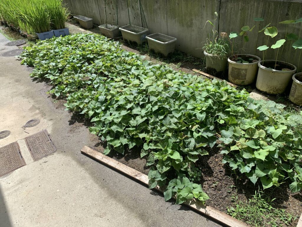 本園の畑に植えたさつまいもの苗がこんなに大きくなりました☆