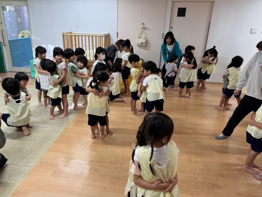 そらぐみが地域のお友達の所へ行き、「一緒にしよう」と手を差し伸べていて