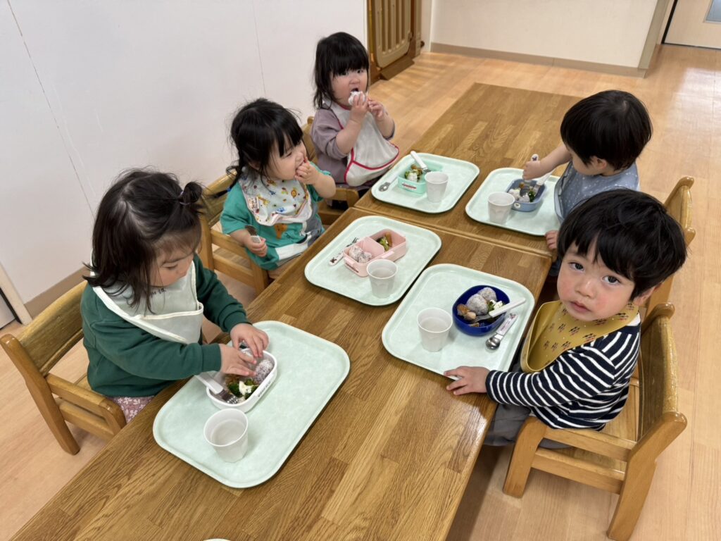毎日歌う「きゅうしょくのうた」も「おべんとうのうた」に変えてかわいい声で歌っていました♪
