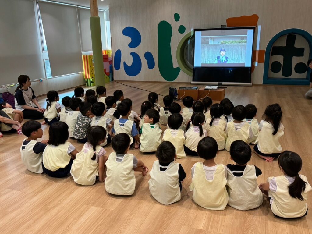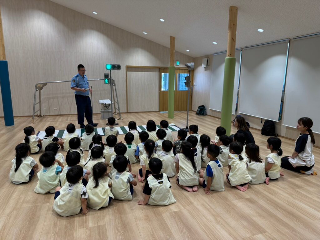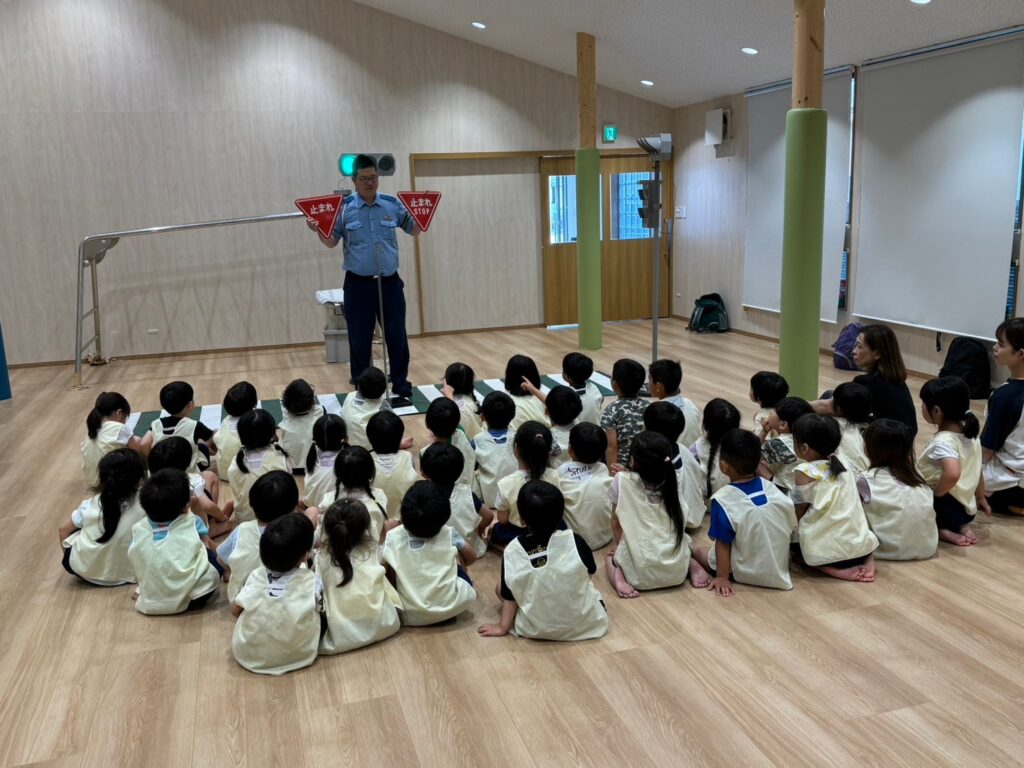 交通安全指導をふじの子ホールで行いました。