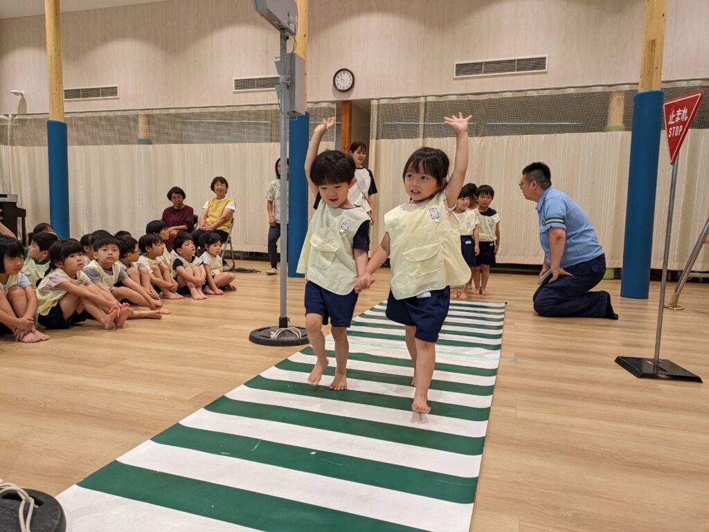 ホールからの帰り道、いつもより意識して歩く子どもたちでした。