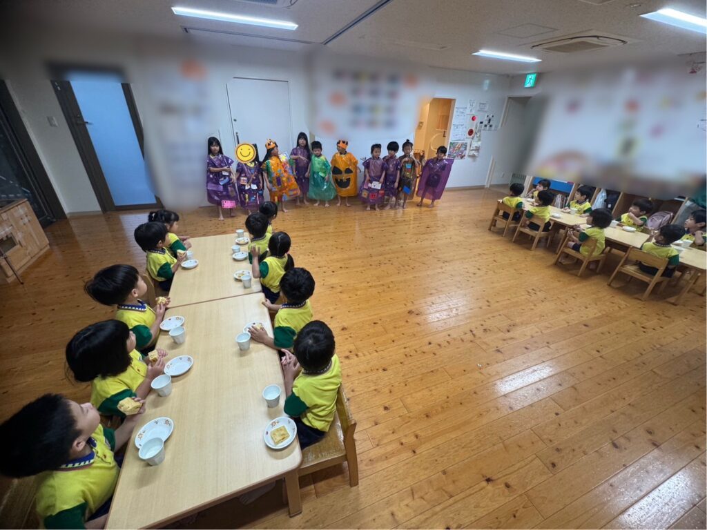 この日は特別におばけに変身したままおやつを食べました。