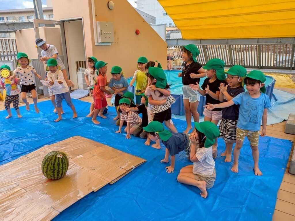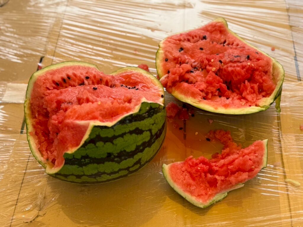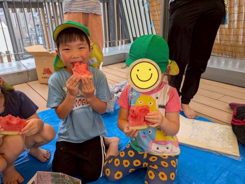 割ったすいかはみんなで美味しくいただきました。
