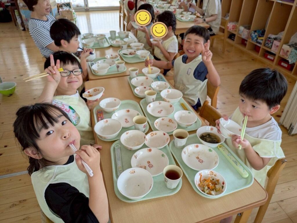 〇たっぷり遊んだあとは大好きな給食