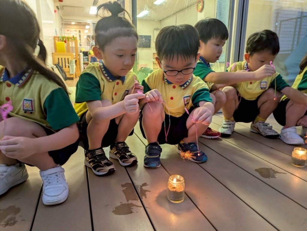 日が暮れたあと、みんなで線香花火を楽しみました。