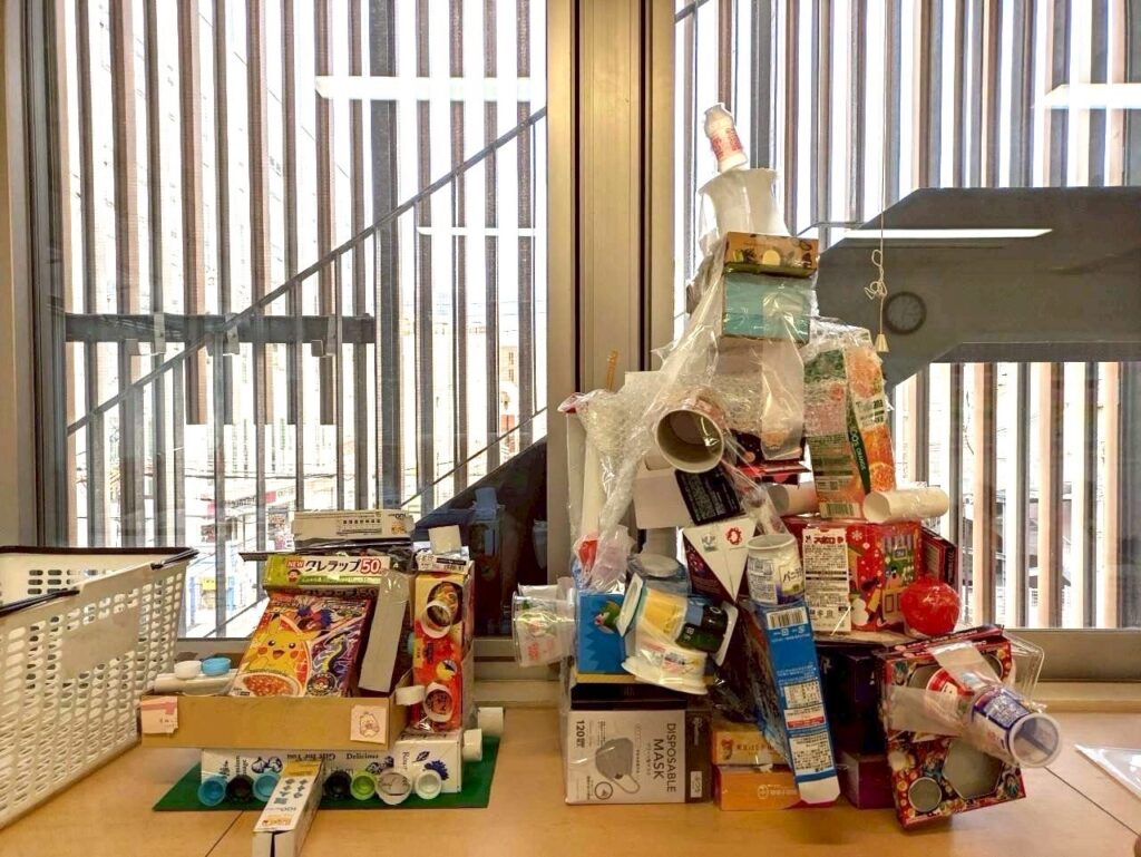 全クラスが作った飾りを、やまぐみが代表で飾り付けました。