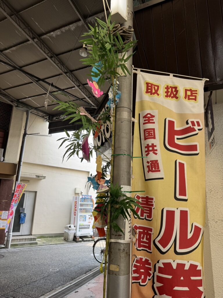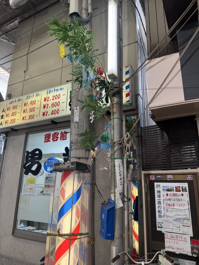7月1日に商店街の笹の飾り付けをしました。