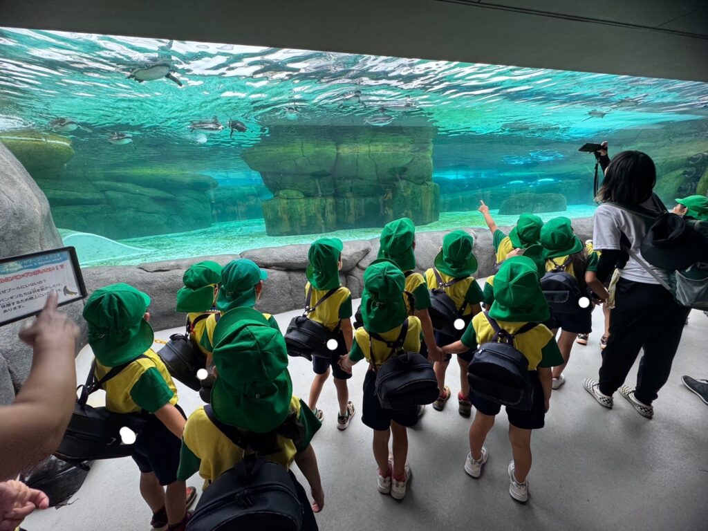 水中からペンギンを見られる場所では、ペンギンのお腹がよく見えて「かわいい〜!」と大盛り上がり。